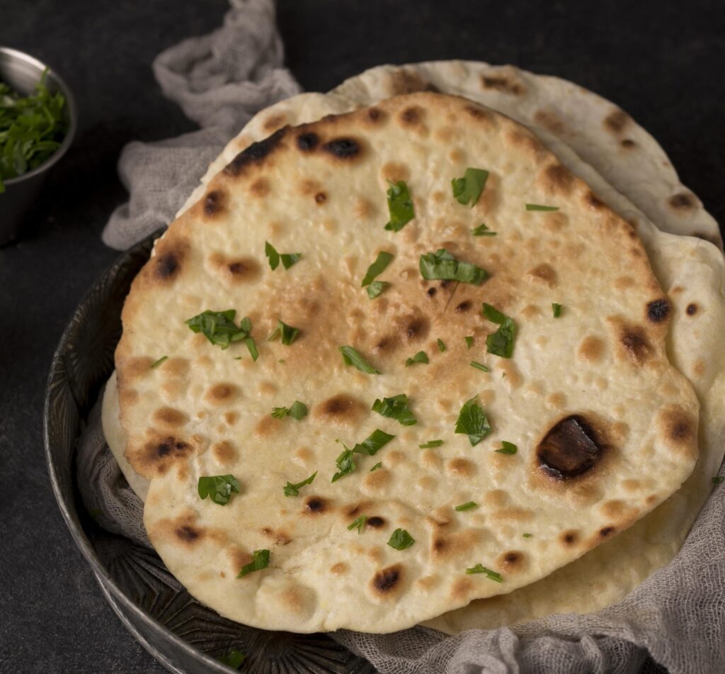 Chickpeas Masala, Paratha And Fresh Yoghurt.