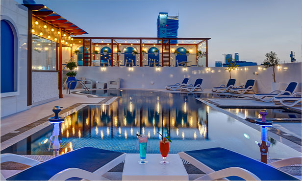 Located at the Rooftop level of the Donatello Hotel in Al Barsha, Dubai, The D Roof & Lounge offers you the rich taste and exciting aromas of healthy Mediterranean cuisine coupled with a wide selection of beverages. Unwind in the sunshine or dine beneath the moonlit sky on elevated platforms overlooking the glistening pool and a panoramic view of the Dubai skyline with iconic landmarks – Burj Al Arab and Burj Khalifa. Take a break and chill with a variety of shisha flavours. The D Roof & Lounge sets a high mood for any occasion!