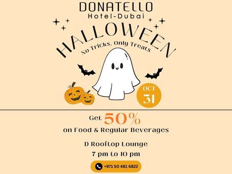 Celebrate Halloween at our D rooftop lounge with a night of eerie elegance and hauntingly good flavors. Enjoy 50% OFF on all food and beverages as we transform your dining experience with spooky decor, themed dishes, and a festive atmosphere that’s to die for. Gather your friends and family for a frightfully fun night of feasting and celebration.