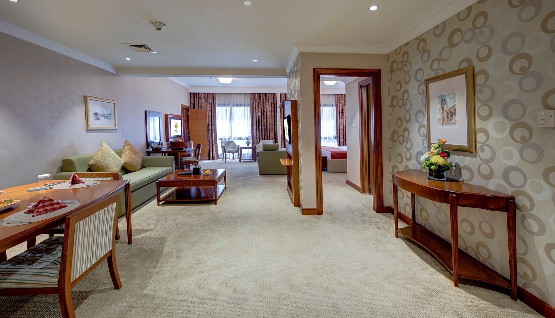 Our executive suite offers spacious living room with luxury furniture, separate dining area, well designed bathroom with amenities and a separate bath for guest use.